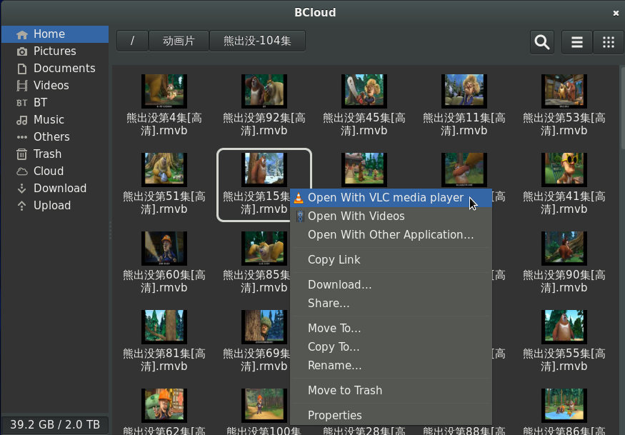 1.支持流媒体模式, 可以直接用本地的视频播放软件播放百度网盘里的视频. 百度网盘的网页版及windows客户端都是使用的流媒体模式来播放的网盘视频, 它们会调用adobe flash player, 这东西很占CPU, 不一会儿笔记本就很热了; 但bcloud调用本地的视频播放器, 系统消耗就很少了. 朋友们可以比较一下性能.