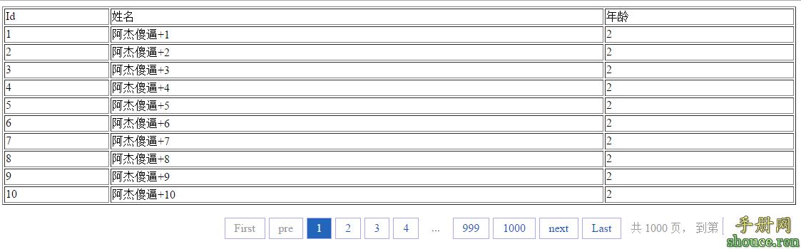 最后我们可以看下出来的效果:(表格样式没有设置比较丑,分页样式自己也可以根据需要修改css文件)
