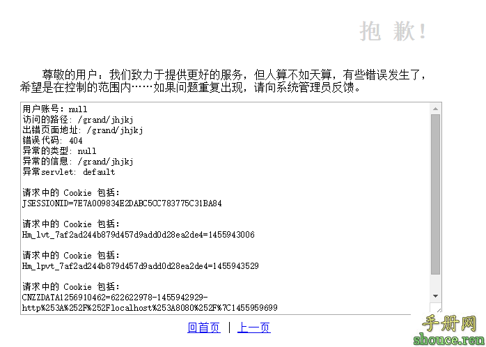 <div style="padding:2% 0;text-indent:2em;">尊敬的用户:我们致力于提供更好的服务,但人算不如天算,有些错误发生了,希望是在控制的范围内……如果问题重复出现,请向系统管理员反馈。</div>