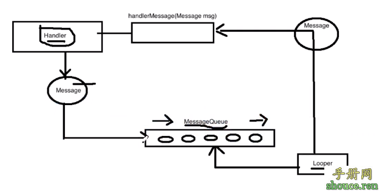 Handler为Android提供了一种异步消息处理机制,当向消息队列中发送消息 (sendMessage)后就立即返回,而从消息队列中读取消息时会阻塞,其中从消息队列中读取消息时会执行Handler中的public void handleMessage(Message msg) 方法,因此在创建Handler时应该使用匿名内部类重写该方法,在该方法中写上读取到消息后的操作,使用Handler的 obtainMessage() 来获得消息对象。