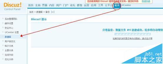 17、选择站长板块,点击数据库,选择恢复数据库。