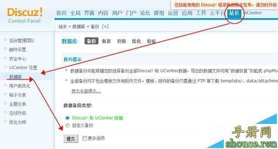 3、按照提示,选择备份类型,点击提交开始进行备份。