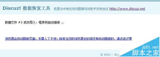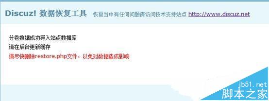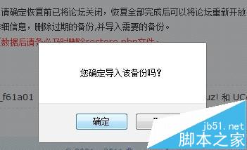 20、点击确定,开始恢复。恢复数据的整个过程会在一个新页面完成,您成功恢复数据后请务必及时删除restore.php文件。