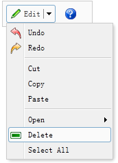 点击下拉的菜单按钮,分隔按钮由链接按钮和菜单组成。菜单按钮被分成两部分。当移动鼠标移动动分隔按钮上,一个'split'行会显示出来。菜单时显示鼠标光标移至上方的右侧部分分隔按钮。