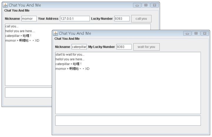 简单的一对一聊天程序,Lucky Number 就是 Port 号码啦!Orz....