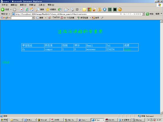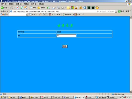 2、当点击成绩那栏的”score”,就会跳转到给当用学生打成绩的页面marking.jsp