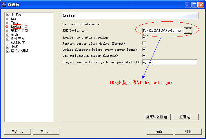 找到“D:\\\\plug-in\\\\lomboz.301\\\\eclipse\\\\plugins\\\\com.objectlearn.jdt.j2ee_3.0.1\\\\servers”目录(我采用的是links安装方式);如果采用的是直接把Lomboz解压到Eclipse来安装的,那么要找到“eclipse的安装目录\\\\plugins\\\\com.objectlearn.jdt.j2ee_3.0.1\\\\servers”目录。