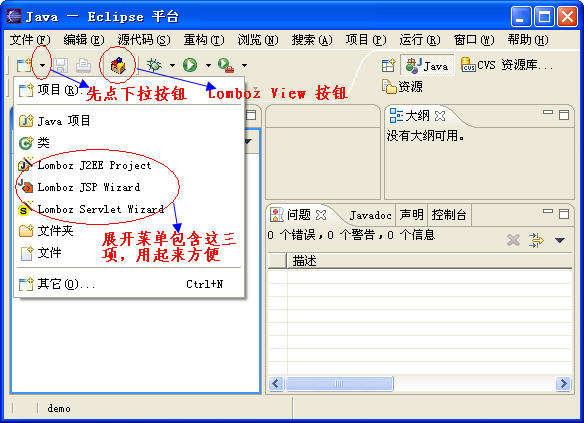 由于这篇文章重点是放在Lomboz上,所以有必要强调一下。lomboz是Eclipse的一个J2EE的插件,它将很多Java应用服务器、J2EE组件和Web应用开发集成到Eclipse中,可以帮助Java开发者使用Eclipse建立、测试、部署J2EE应用。