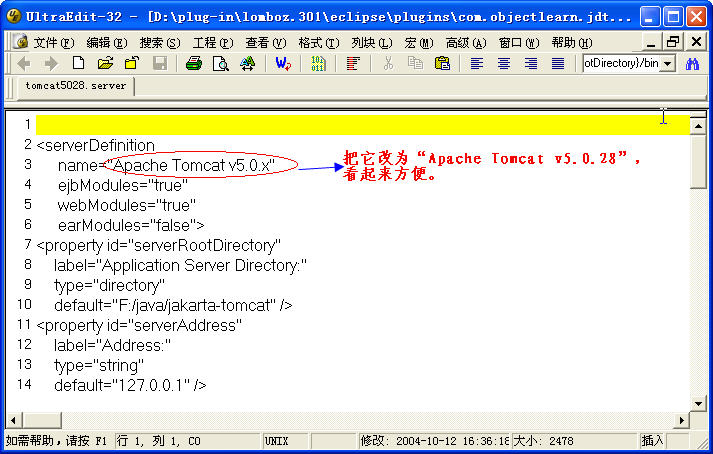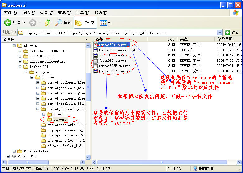 先把“tomcat50x.server”文件改名为“tomcat5028.server”(我用的是5.0.28版本),看起来方便。