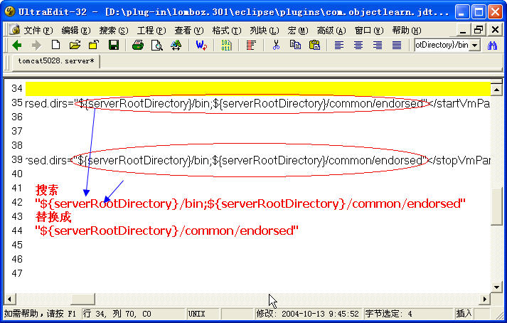 由于Tomcat 5.0.27、5.0.28版本在Lomboz中无法启动,故需要一些修改。