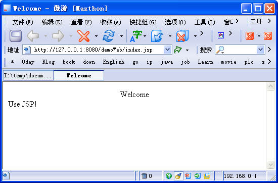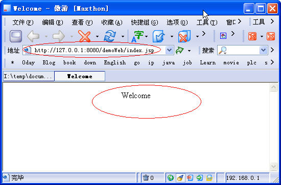 打开浏览器,在地址栏中输入“http://127.0.0.1:8080/demoWeb/index.jsp”