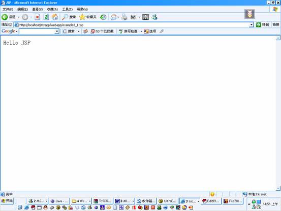 放入C:\Tomcat5\webapps\myapp\webapp\example3_1.jsp目录下。在浏览器下运行:http://localhost/myapp/webapp/example3_1.jsp即可看到效果如下:
