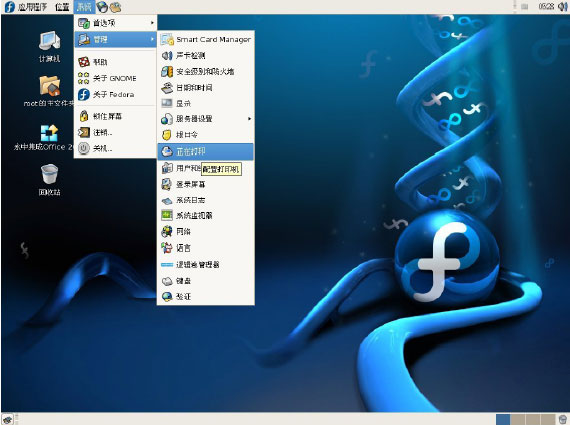 打印服务,如果没有请开启该服务,方法同启动smb服务一样。通过“系统”→“管理”→“正在打印”启动“打印机配置”程序,如图12 所示