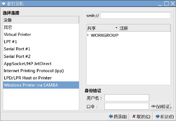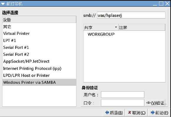xp 系统下共享的激光打印机添加到linux。