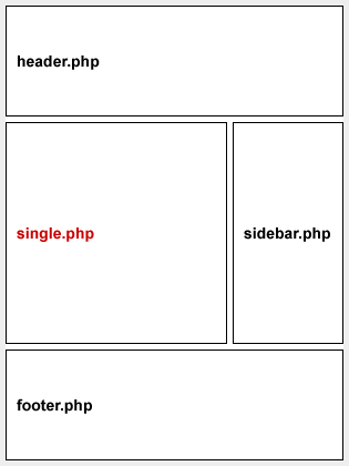 如果你在单一日志页面,这时候页面将会包含这四个模板文件:header.php,single.php,sidebar.php 和 footer。