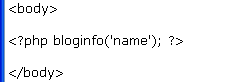 我们在网页的主体 (body) 之间加入了一行 PHP 代码到 index.php。bloginfo() 是调用博客的信息的函数。其中参数 name 代表了它调用的是博客的标题。这个名字是在 option 页面中设置的 Weblog Title。