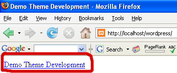 返回到浏览器并刷新。这时候我们应该能够看到博客的标题。博客的标题是 Demo Theme Development。