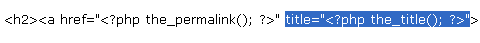 如果不使用 the_title() 作为 title=””的值,那么每篇日志标题链接将会有同样的描述。举个例子,如果用 title=”Click me” 取代 the_title(),每篇日志标题链接都将会用Click me 作为描述。