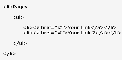第一,它把所有东西放入列表元素标签(LI),第二,它给列表一个名字,Pages。第三,它增加一个无序列表(UL)。第四,它把每个链接放入到 <li> 和 </li>标签之间。