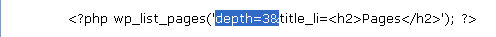 注意,我添加了 depth=3& 而不是仅仅 depth=3。这个 & 在这儿用于把 depth 和title_li 这两个参数区分开。(如果你只有一个 about 页面链接,你将不会注意有什么不同。)