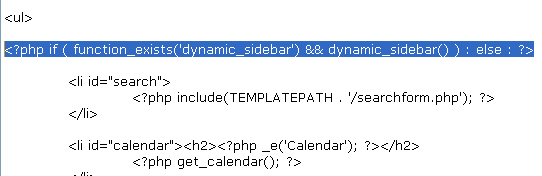 <?php if ( function_exists(’dynamic_sidebar’) && dynamic_sidebar() ) : else : ?>