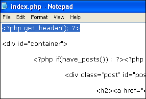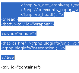 这是我的 header.php 文件。不要从我的这里拷贝,从你自己的 index.php 文件拷贝。