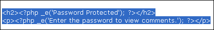 这个修改版的留言模板有一个 H2 子标题显示 Password Protected。默认的留言模板是没有的。