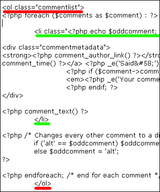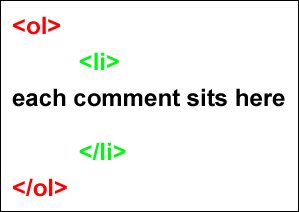 - 在 single.php 文件中,你用 comments-template DIV 围住comments_template()。现在你的评论模板在一个 DIV 标签中的一个有序列表中。