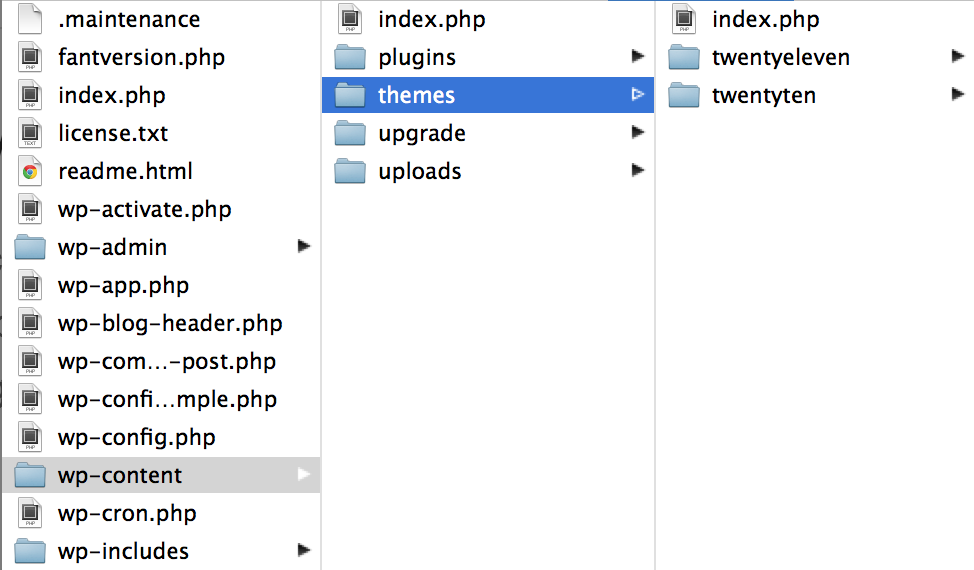 准备好上述步骤后,打开你的wordpress下的wp-content/themes: