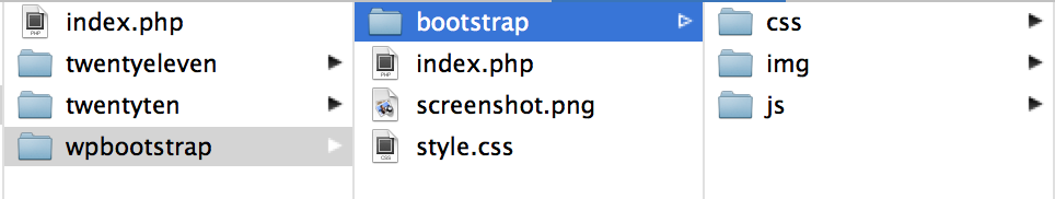 在p-content/themes目录中创建一个叫“wpbootstrap”的新文件夹,在文件夹里面粘贴bootstrap文件夹。