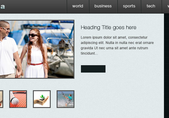 图片轮换区域包含图像预览,缩略图,标题,内容,read more按钮以及轮换控制键。首先,创建一个大小为620像素 x 1305像素,颜色为#e1eaea的矩形,做安放内容之用。