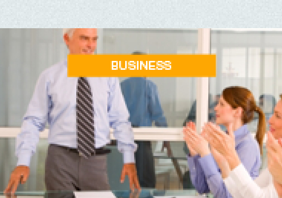 用矩形工具创建一个颜色为#fea702,100像素 x 15像素的形状,用文字工具在形状的中央位置写上文字BUSSINESS,字体为Helvetica Roman,大小8pt,颜色#ffffff。