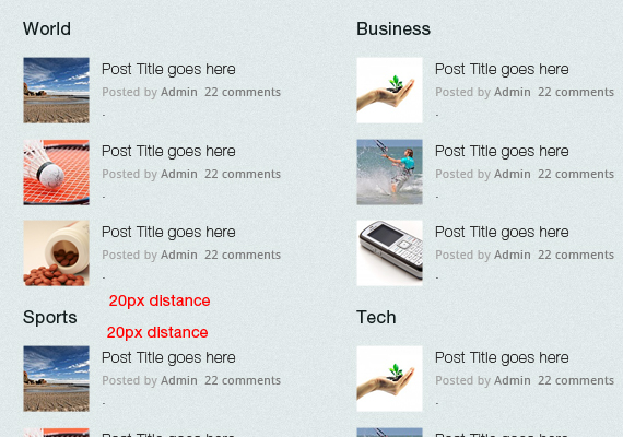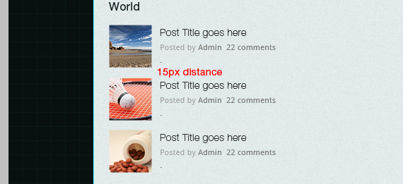 此处文字的参数与recent news的字体参数一样。在下图所示的展示区域放上60像素 x 60像素的样图,并为其添加上类别名。(注意下图所示的红色字体所显示的距离)