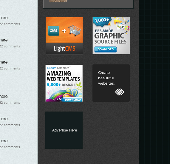 找几张125像素 x 125像素的广告样图放在下图所示位置。(上下广告图之间的间距为35像素)