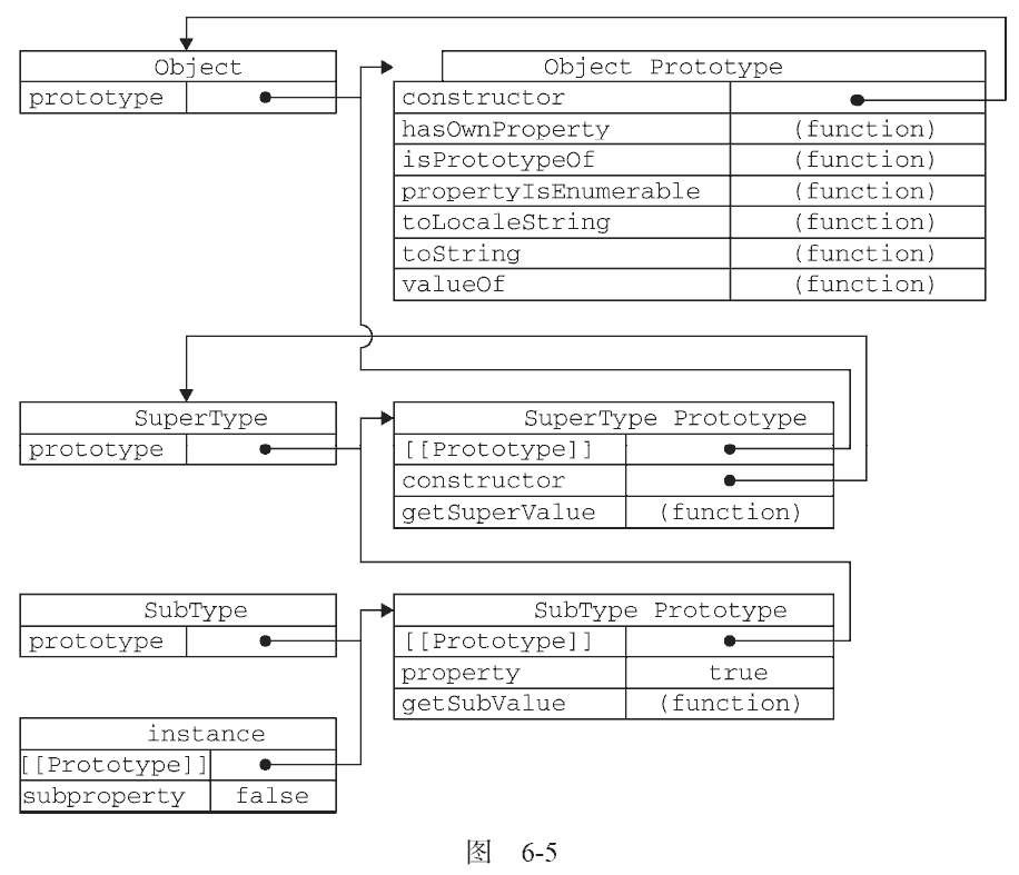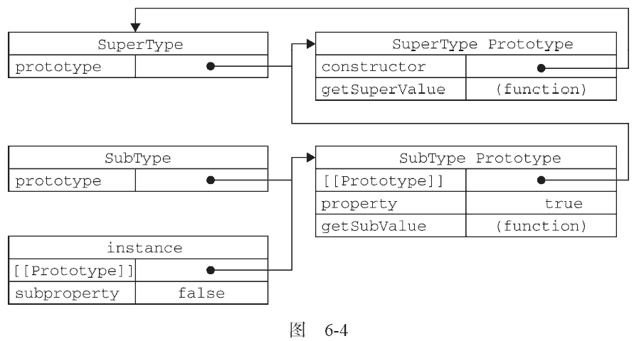 如图6-6 所示,有两组name 和colors 属性:一组在实例上,一组在SubType 原型中。这就是调用两次SuperType 构造函数的结果。好在我们已经找到了解决这个问题方法——寄生组合式继承。
