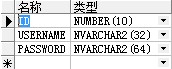 3,这个表中有3个字段,ID主键,用户名username和密码password,因为oracle数据库把表名和字段都是转成大写的,同时不支持ID主键自增,我只有使用另外的方法来实现这个功能,比如:ID自动序列+触发器实现ID自增。