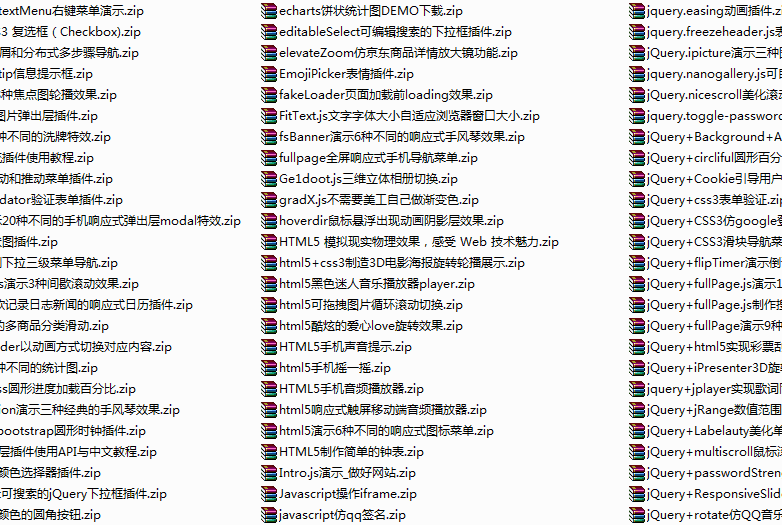 注意:【查看】的示例只是当前的内容,【下载】的是全部jQuery插件一起打包后的文件。
