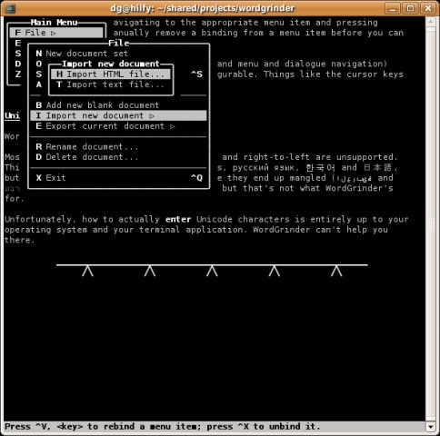 WordGrinder 是一个基于命令行的文字处理器,类似当年的WPS,还可以导出到HTML文档哦,酷!